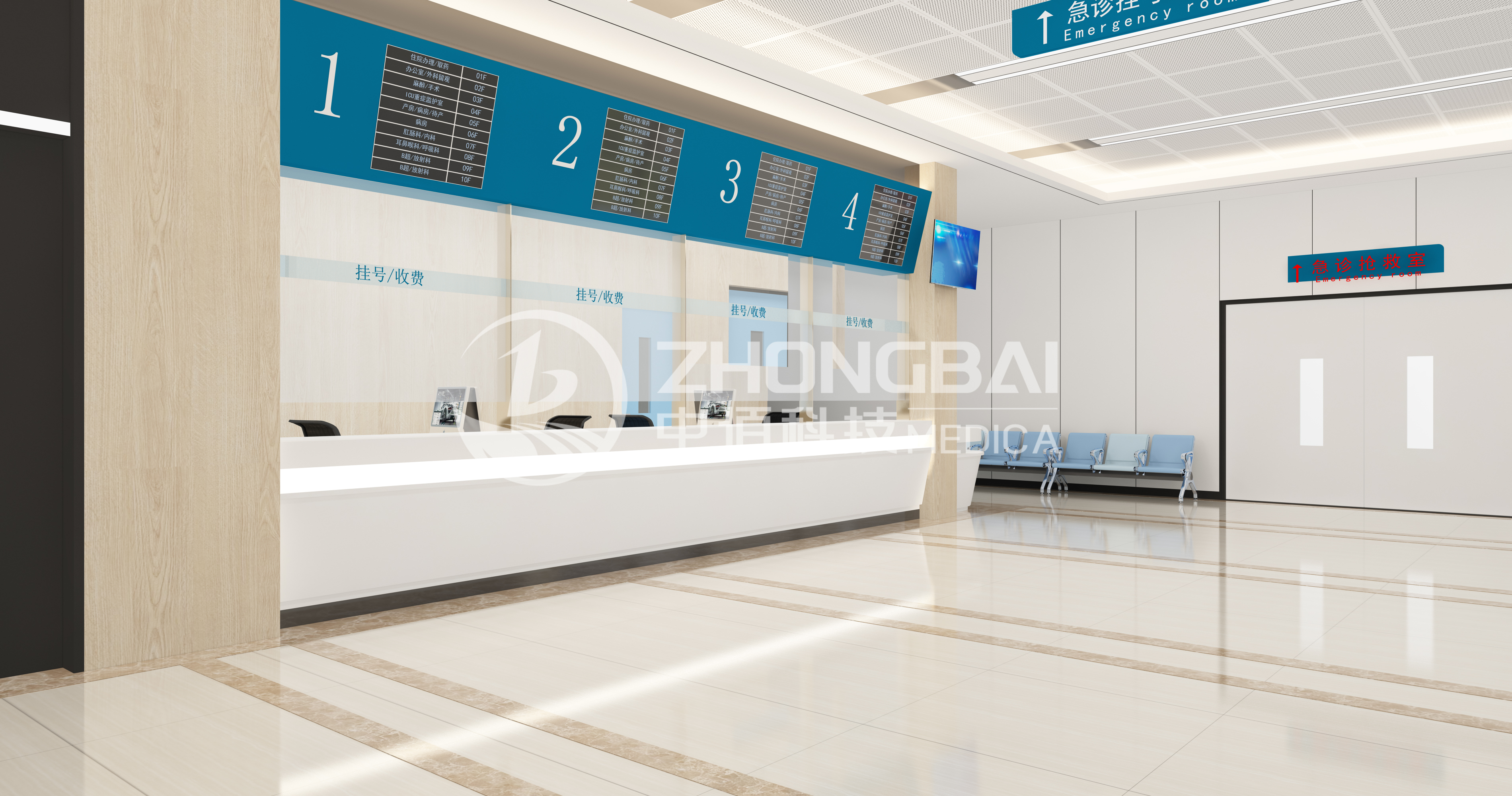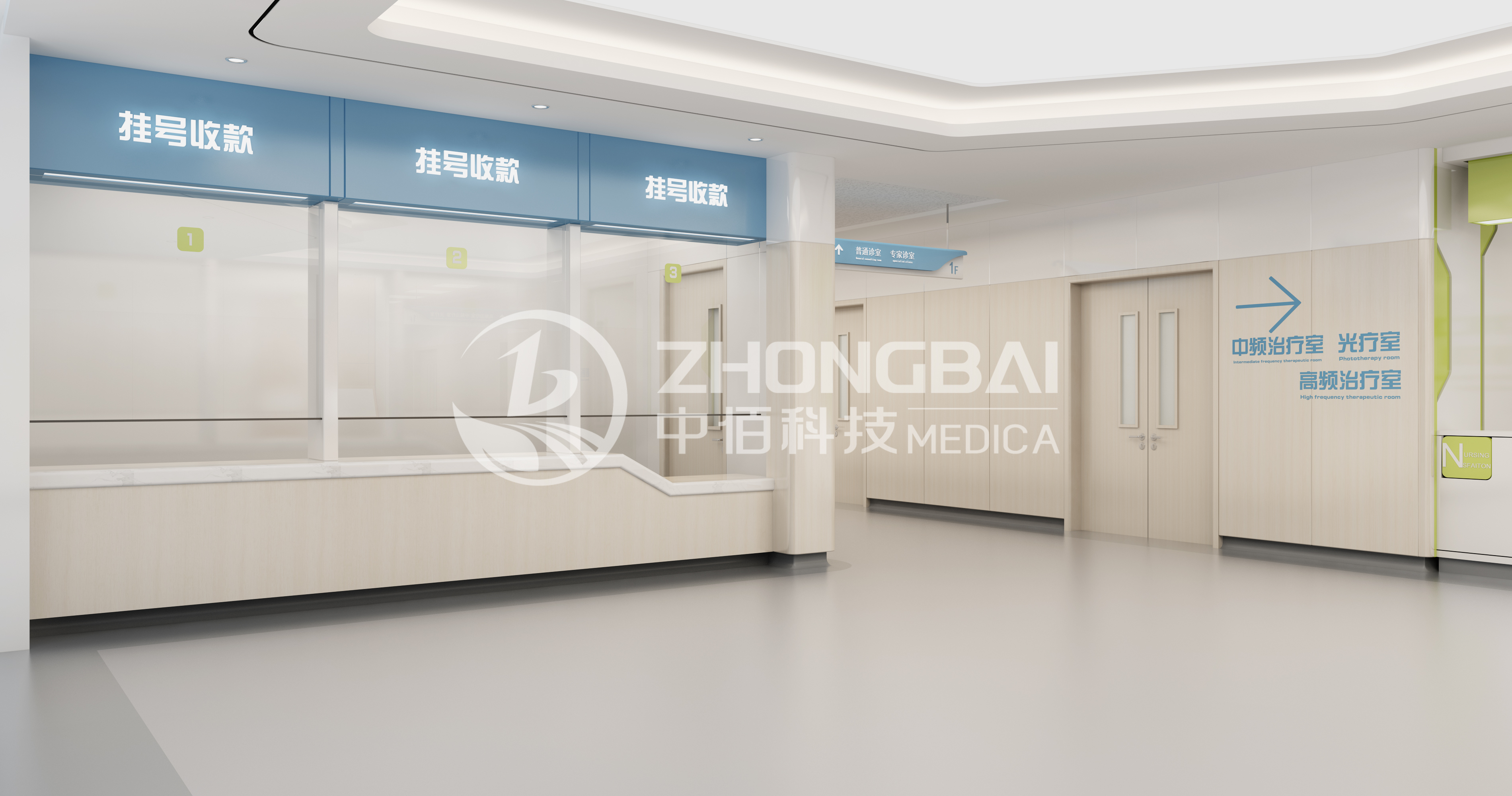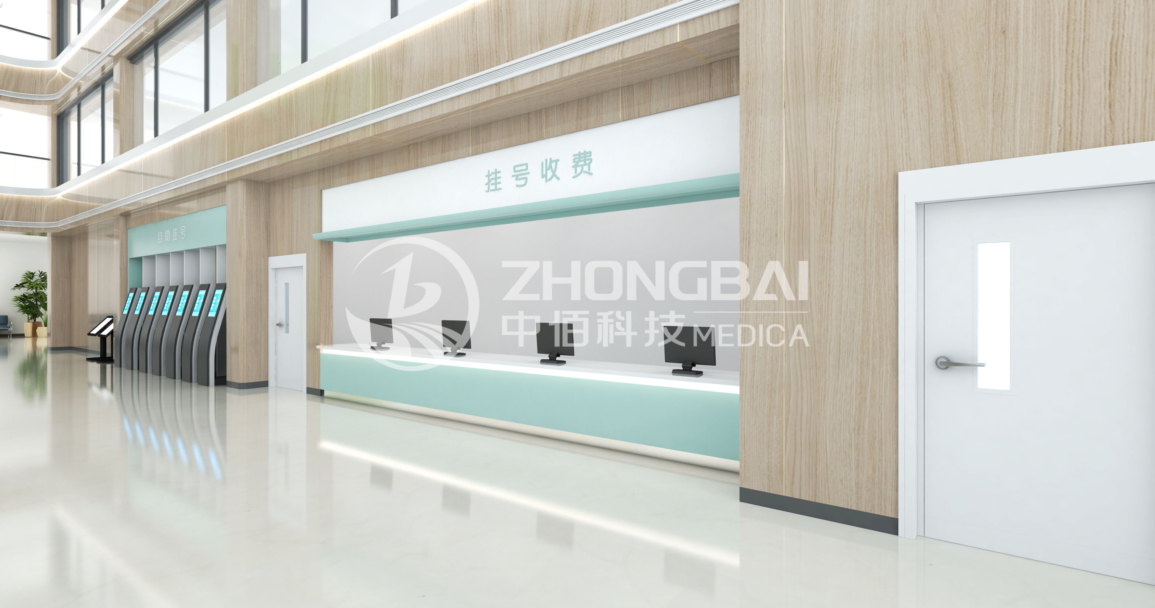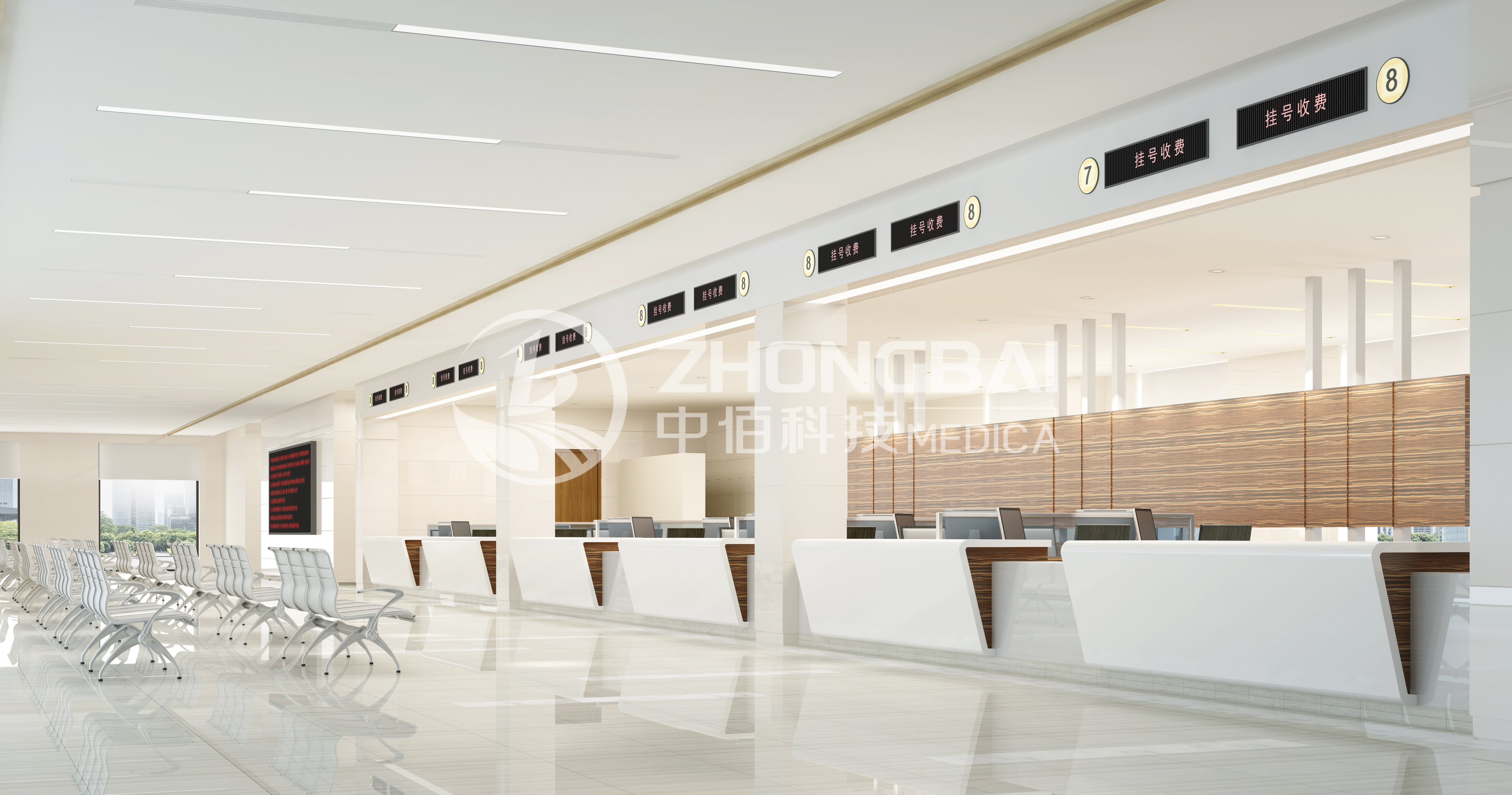 門診收費(fèi)、掛號(hào)單元是直接面向社會(huì)的重要窗口,是醫(yī)院服務(wù)形象的展示平面。一般設(shè)置在門診大廳靠近入口位置,為避免集中掛號(hào)的擁擠問題、減少患者排隊(duì)等候時(shí)間,可設(shè)置分層收費(fèi)掛號(hào)窗口,優(yōu)化門診流程。